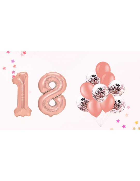 Zestaw Balonów na 18-te Urodziny Różowe Złoto 12el MK719