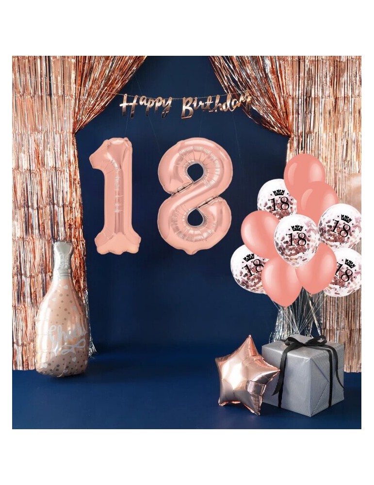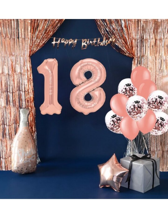 Zestaw Balonów na 18-te Urodziny Różowe Złoto z Kurtyną 13el MK720