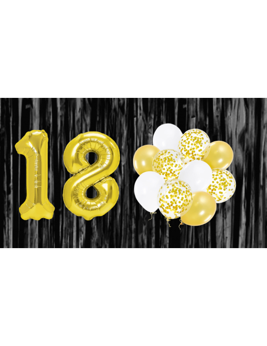 Zestaw Balonów na 18-te Urodziny Złote z Kurtyną 13el MK723