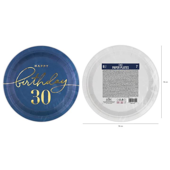 Talerzyki Happy Birthday 30 130421 granatowe 6 sztuk 18 cm urodzinowe