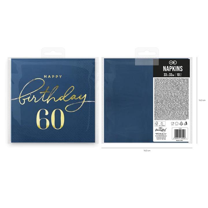 Serwetki Happy Birthday 60 130506 granatowe 10 sztuk 33x33 papierowe urodzinowe