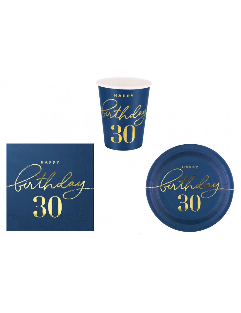 Zestaw Urodzinowy na 30 Talerzyki Kubeczki Serwetki 22el MK180