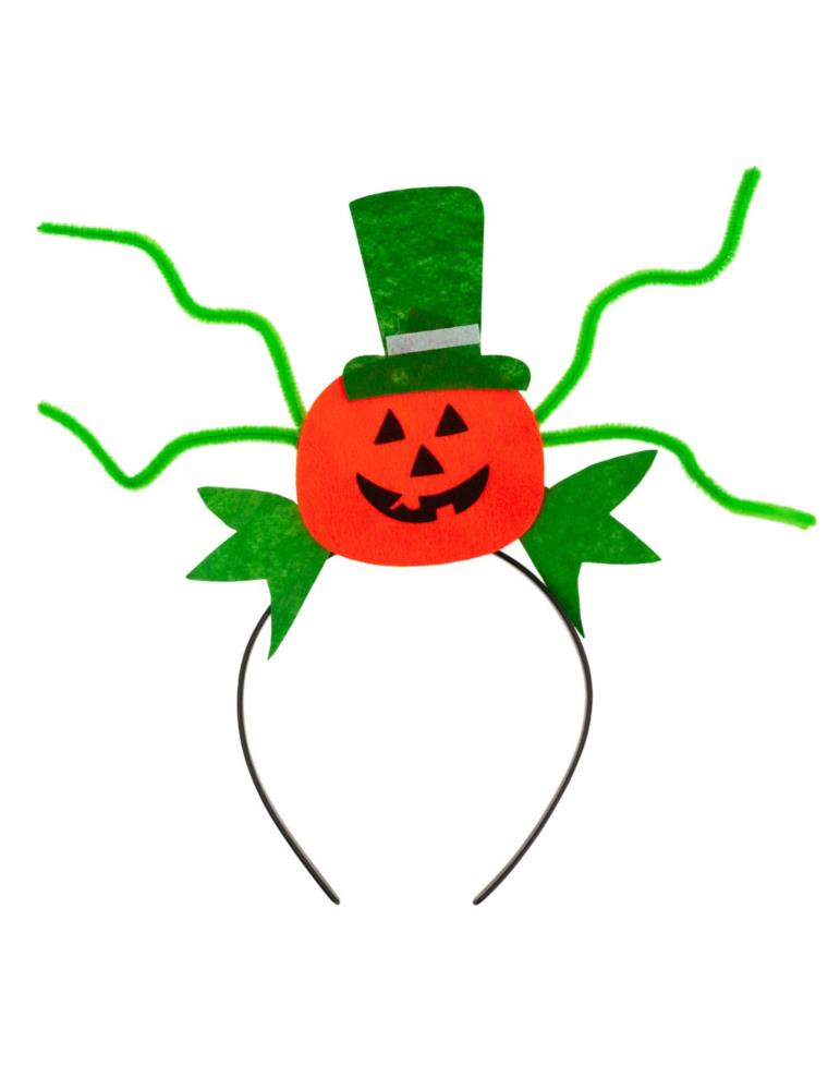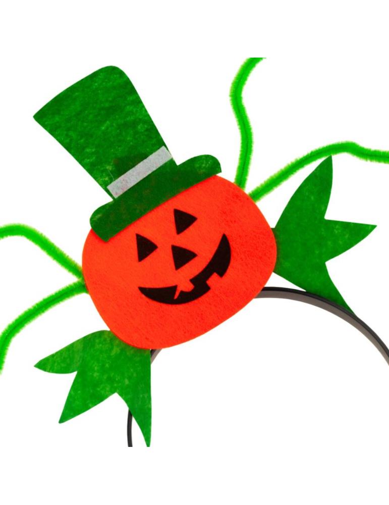 Nakładana na głowę plastikowa opaska z filcową uśmiechniętą dynią.