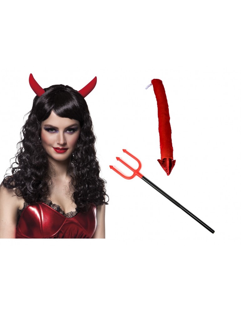 Zestaw Diablica Peruka z Rogami Widły Mini Ogon 3el MK413