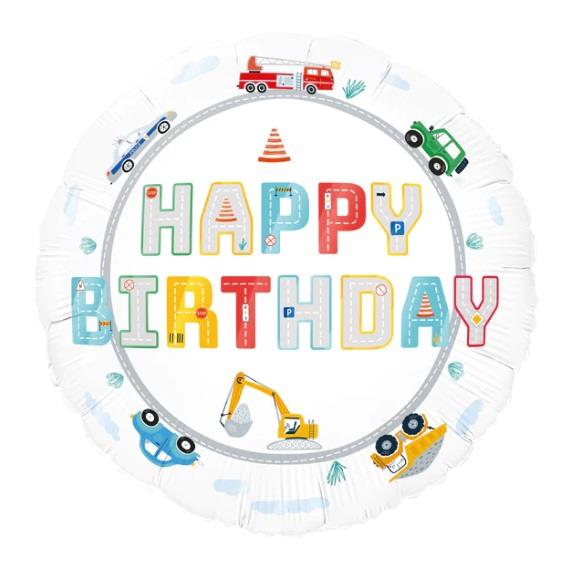 Balon Happy Birthday Auta 45cm 131497 Jeep, garbus, wóz strażacki, radiowóz, wywrotka, koparka