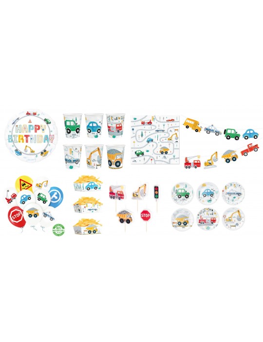 Wspaniały zestaw balonów lateksowych z autami i znakami drogowymi, w 100% biodegradowalnych.