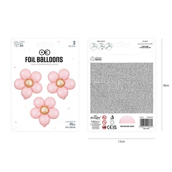 Zestaw Balonów Kwiat Różowy 156575 foliowy matowy 45cm 3szt.