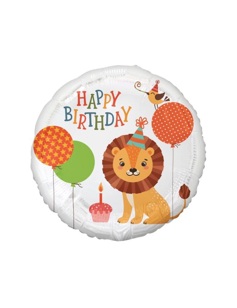 Balon Lew na urodziny w temacie dżunglii, z napisem Happy Birthday