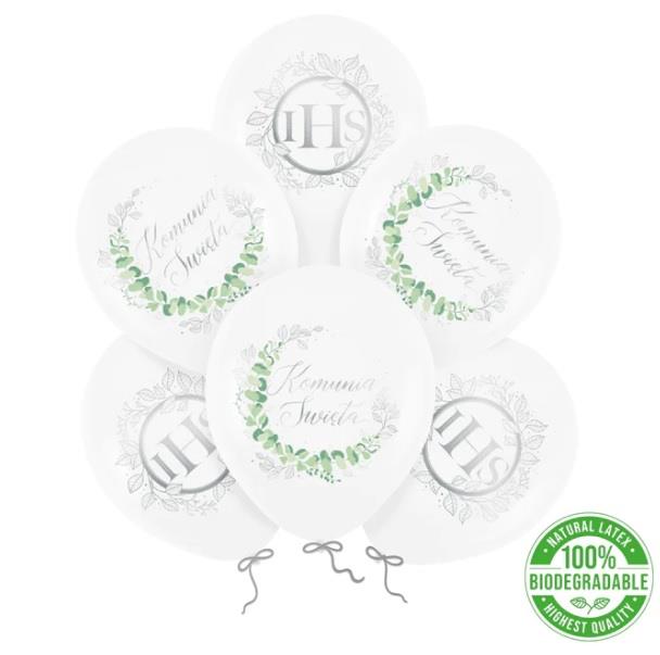 Balony Komunia Święta Eukaliptus 131886 srebrny 6szt