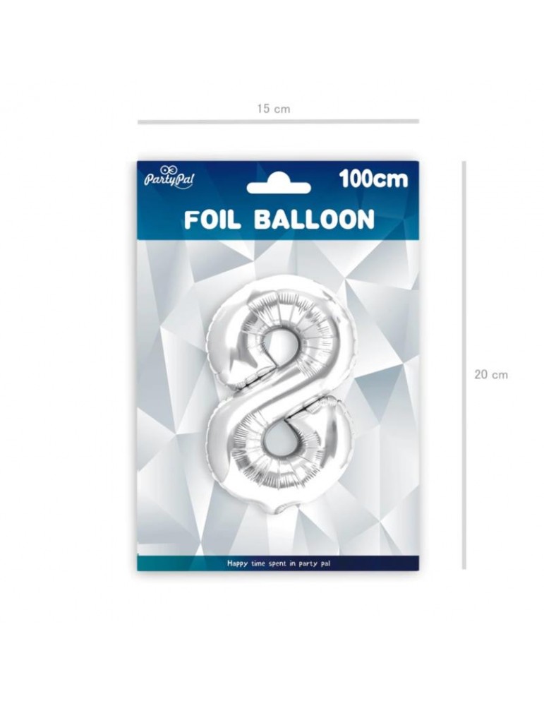Balon foliowy Cyfra 8 srebrna 450010 100 cm liczba urodziny przyjęcia okazje