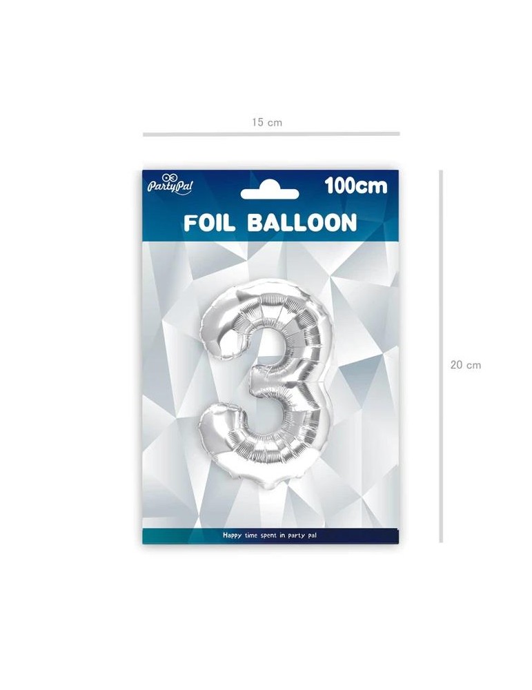 Balon foliowy Cyfra 3 srebrna 450005 100cm liczba urodziny przyjęcia okazje