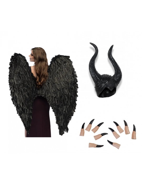 Zestaw Strój Diabolina Maleficent Rogi Skrzydła 120cm Pazury 3el MK854