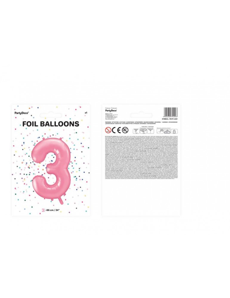 Balon foliowy Cyfra ""3"", 86cm, różowy