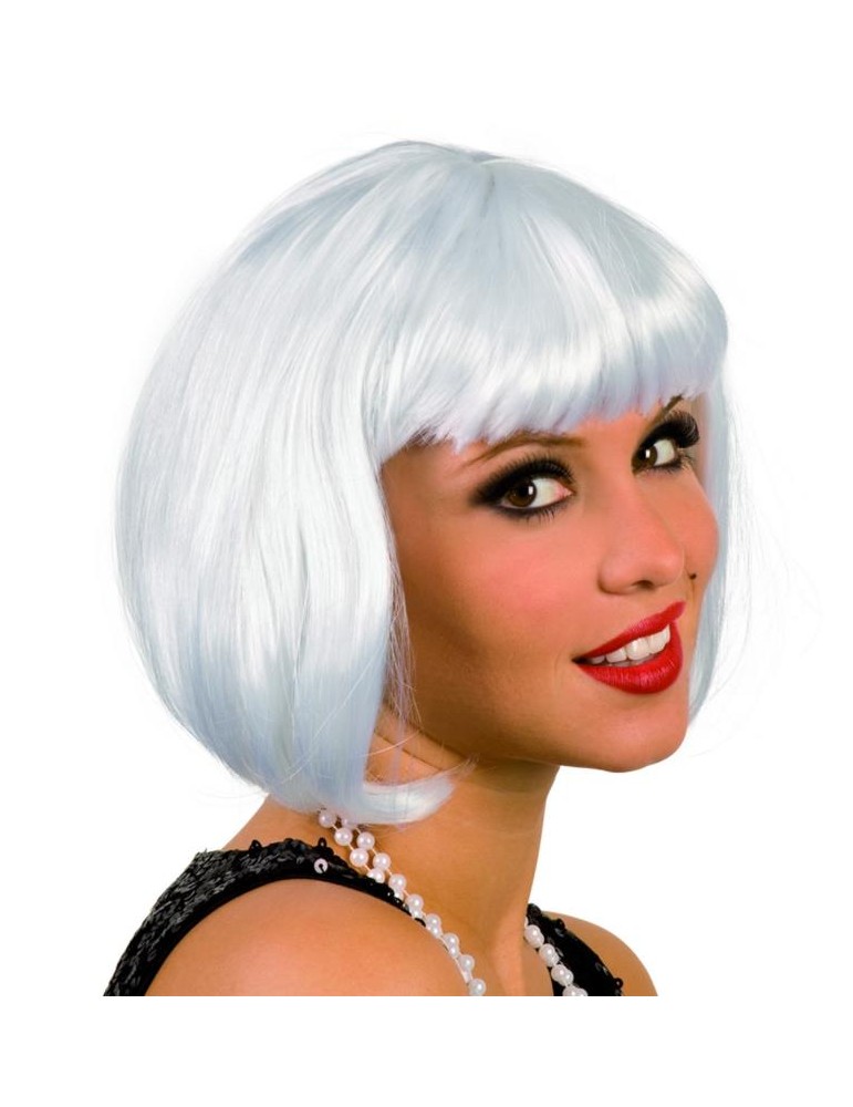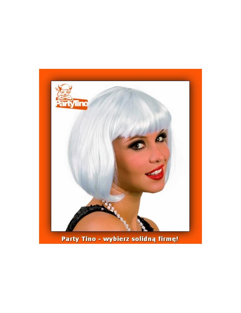 Peruka damska , krótka z grzywką w kolorze białym.