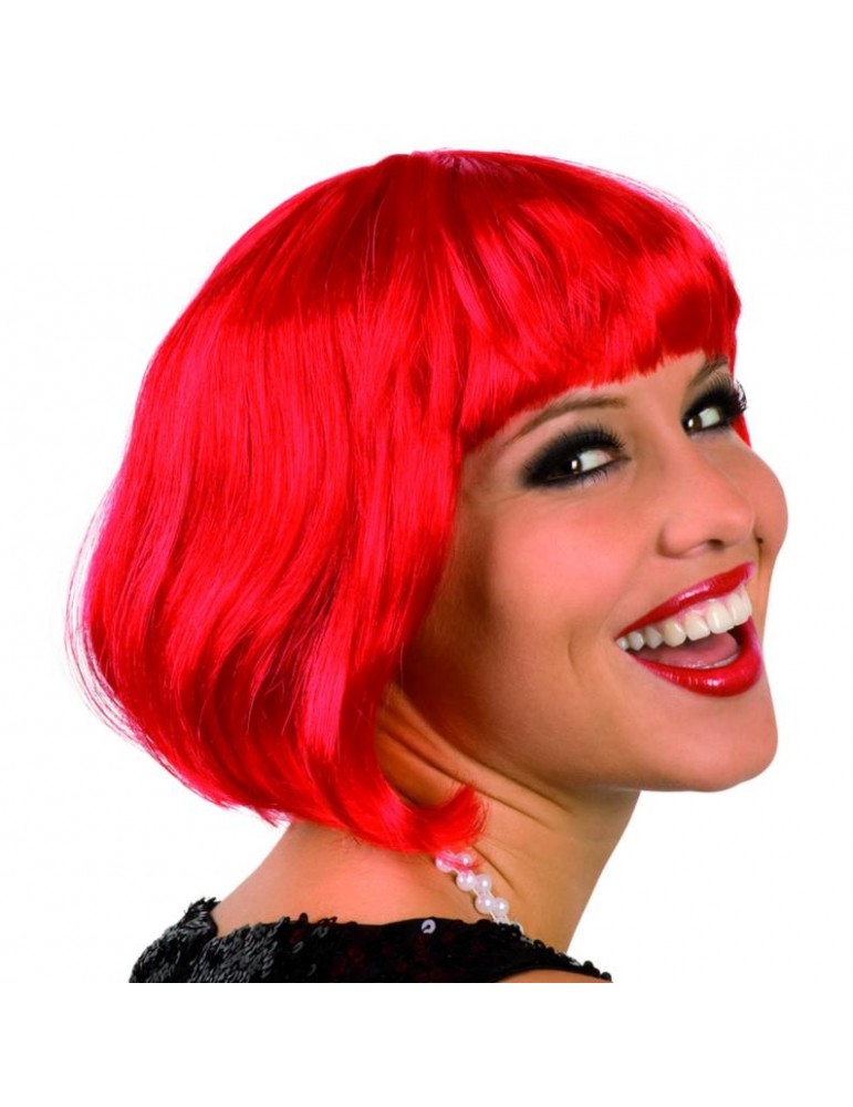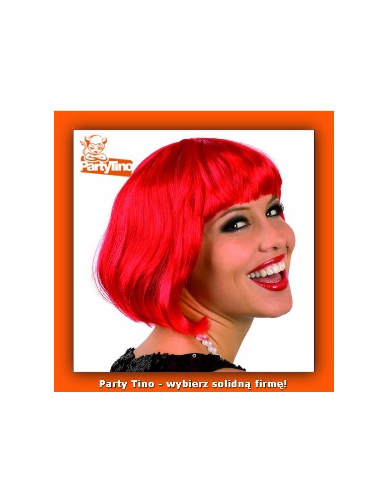Peruka damska , krótka z grzywką w kolorze czerwonym.