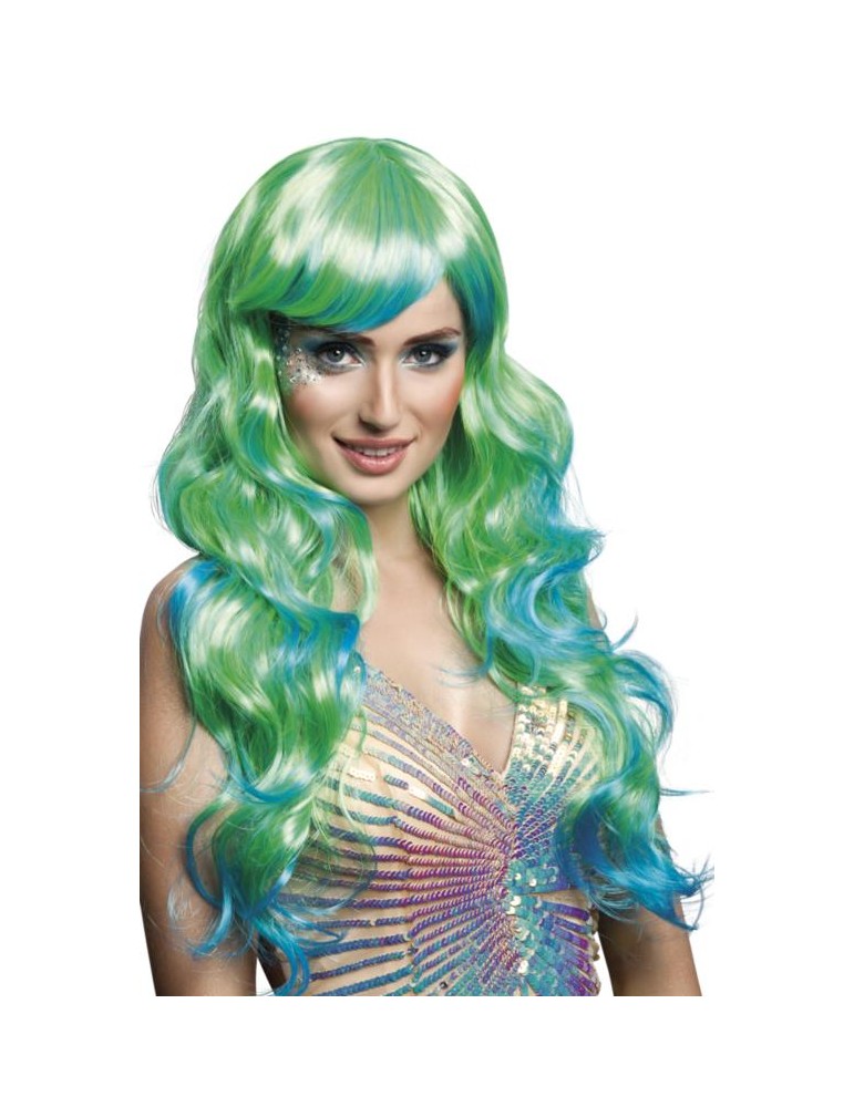Peruka Długa Zielono Niebieska 85742 Syrenka Morska