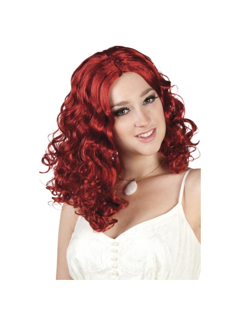 Damska peruka z kręconymi włosami w kolorze ognistej czerwieni.