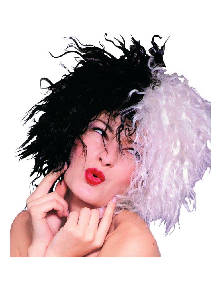 Damska peruka Cruelli De Mon z bajki " 101 Dalmatyńczyków " w kolorze biało - czarnym.