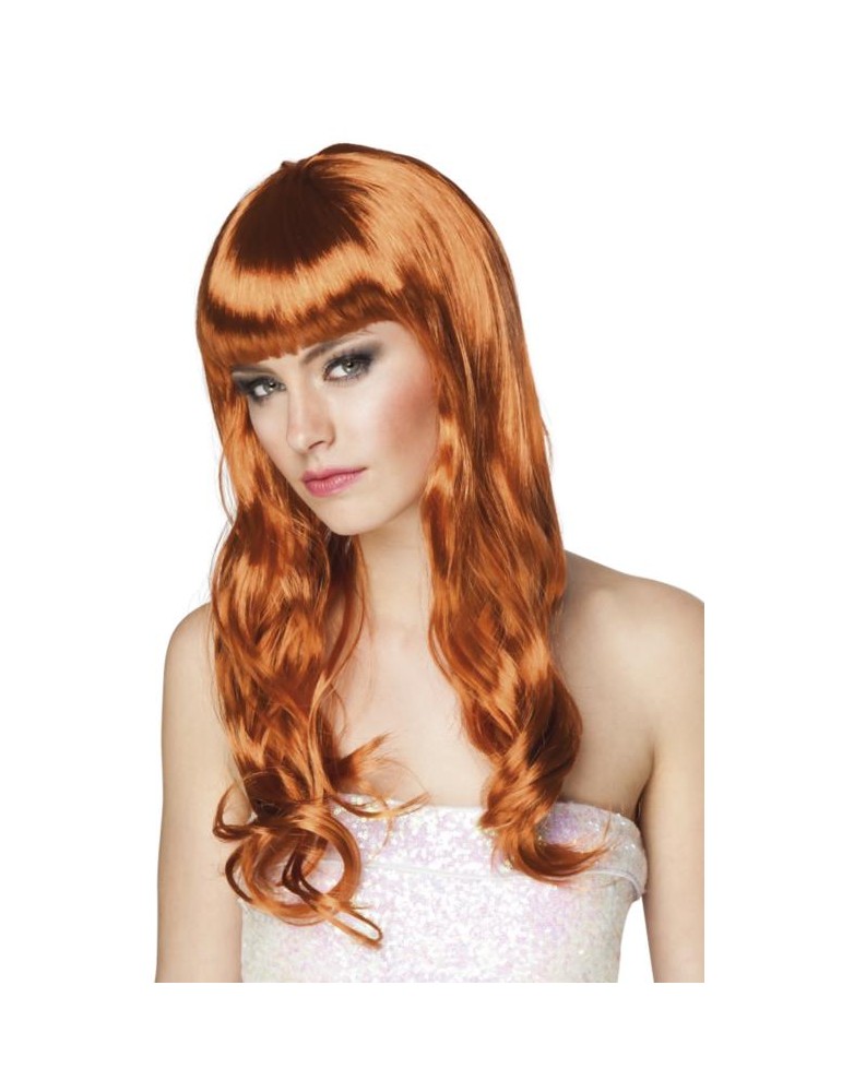 Peruka Długa Miedziana z Grzywką 85861 Ruda Brązowa