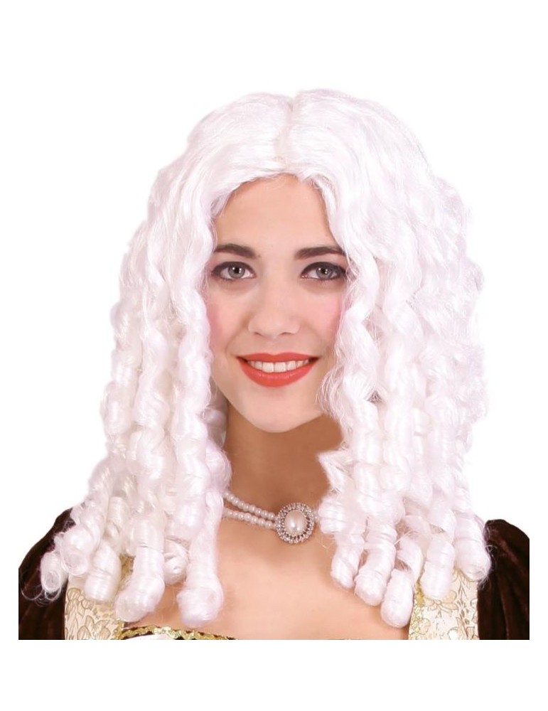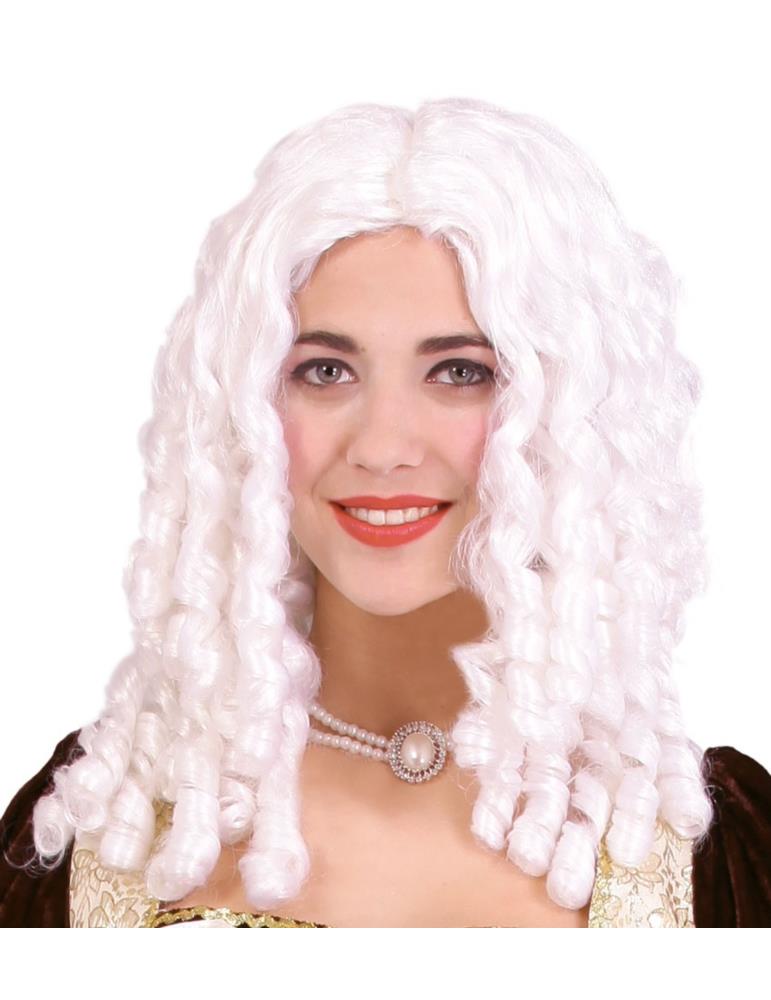 Damska długa peruka w kolorze białym, włosy poskręcane w spirale, loki.