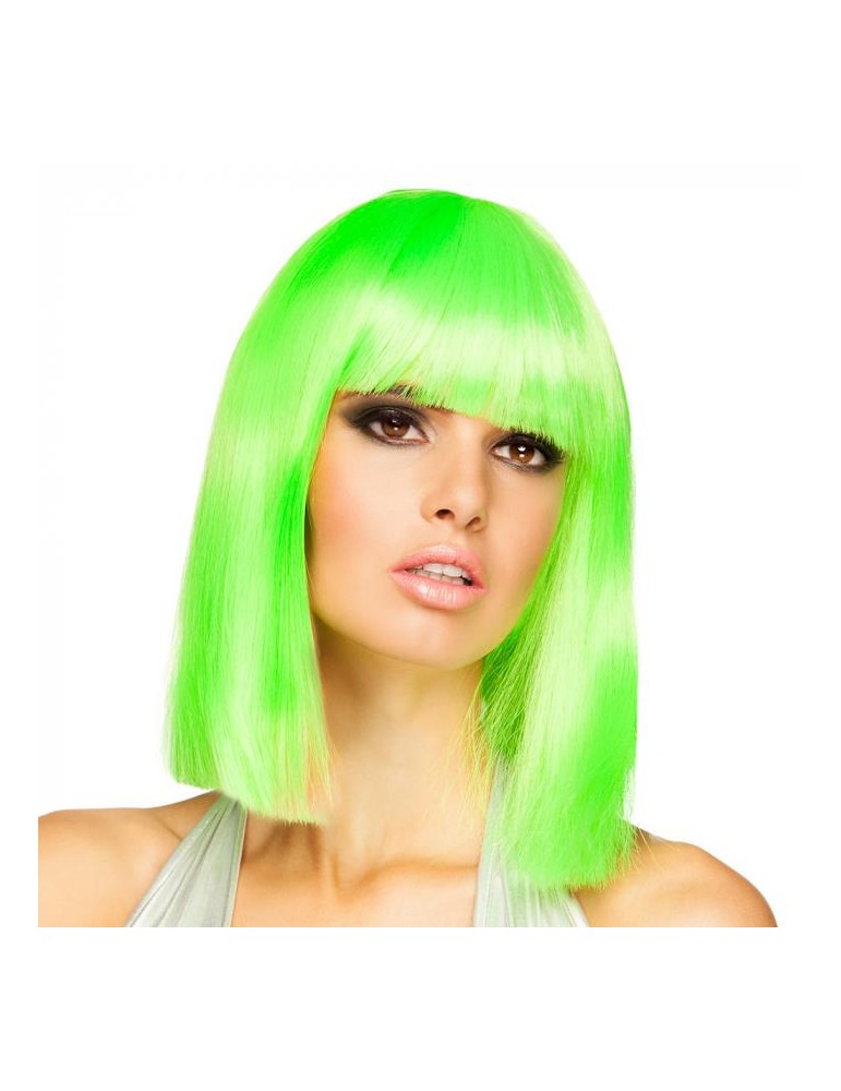 Peruka Krótka Zielona z Grzywką 85765 neonowa do Ramion