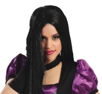 Peruka z prostymi,długimi czarnymi włosami mocowanymi na siadce.
