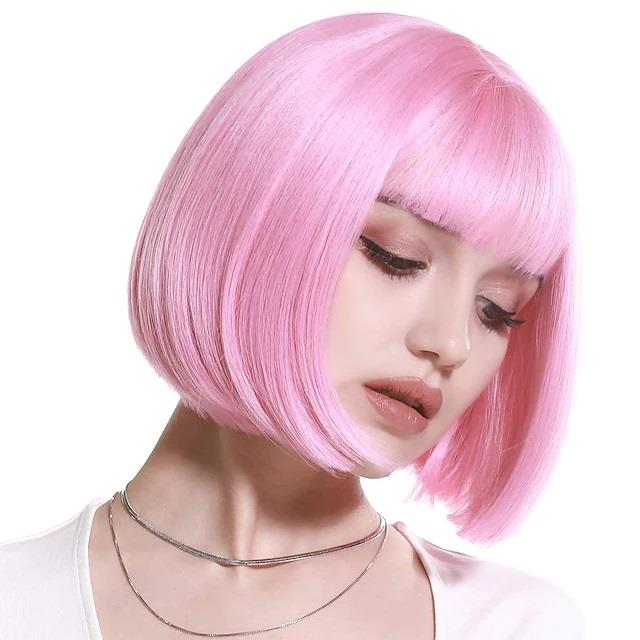 Krótkie włosy jasno-różowe z grzywką bob