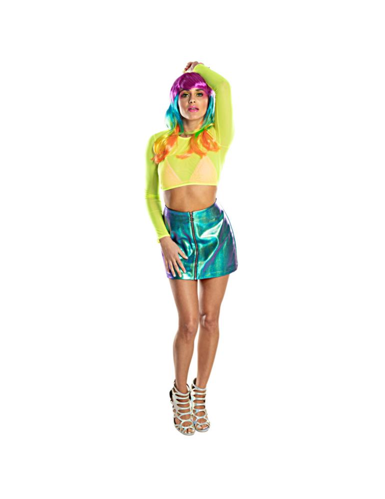 Peruka Długa Multikolor Disco 85702 z grzywką tęczowa lata 80-te PRL Retro