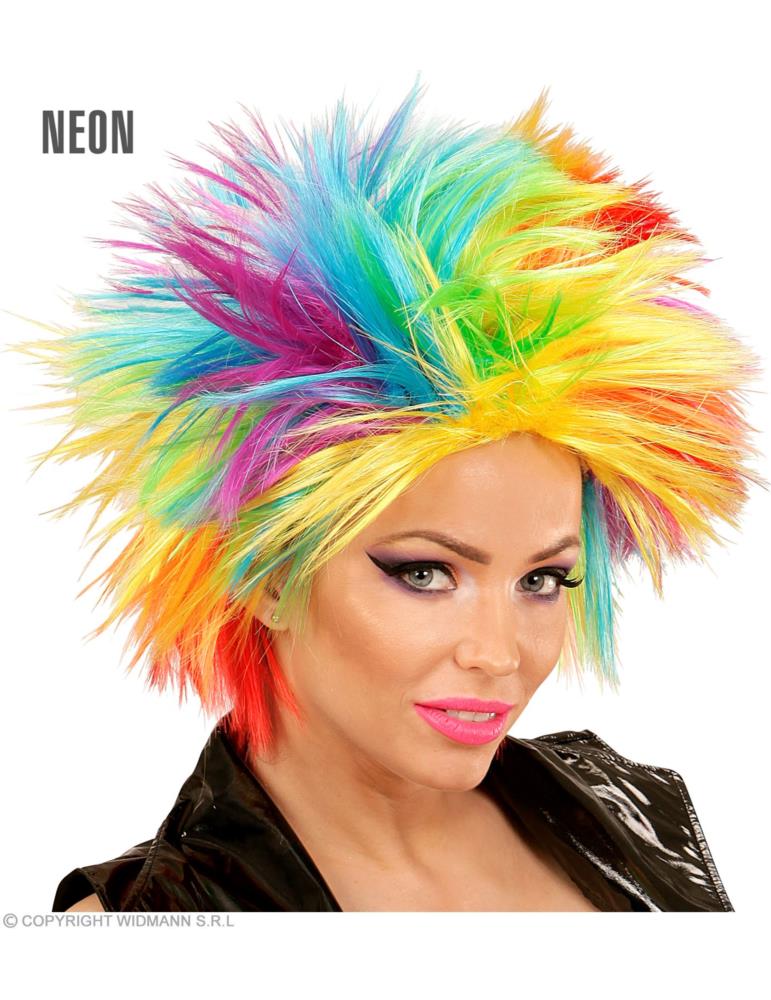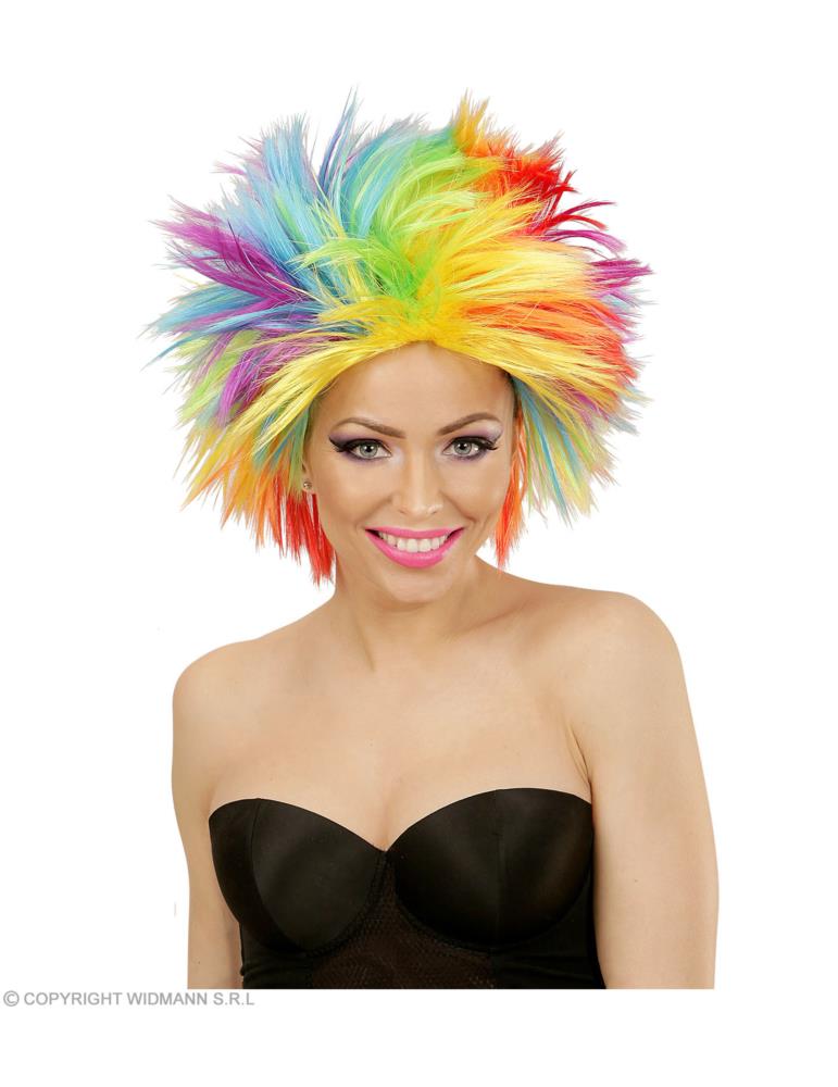 Peruka punk dla dorosłych w kolorach tęczy, jest efektownym elementem każdej kolorowej kostiumowej kreacji lub stroju na imprezę.