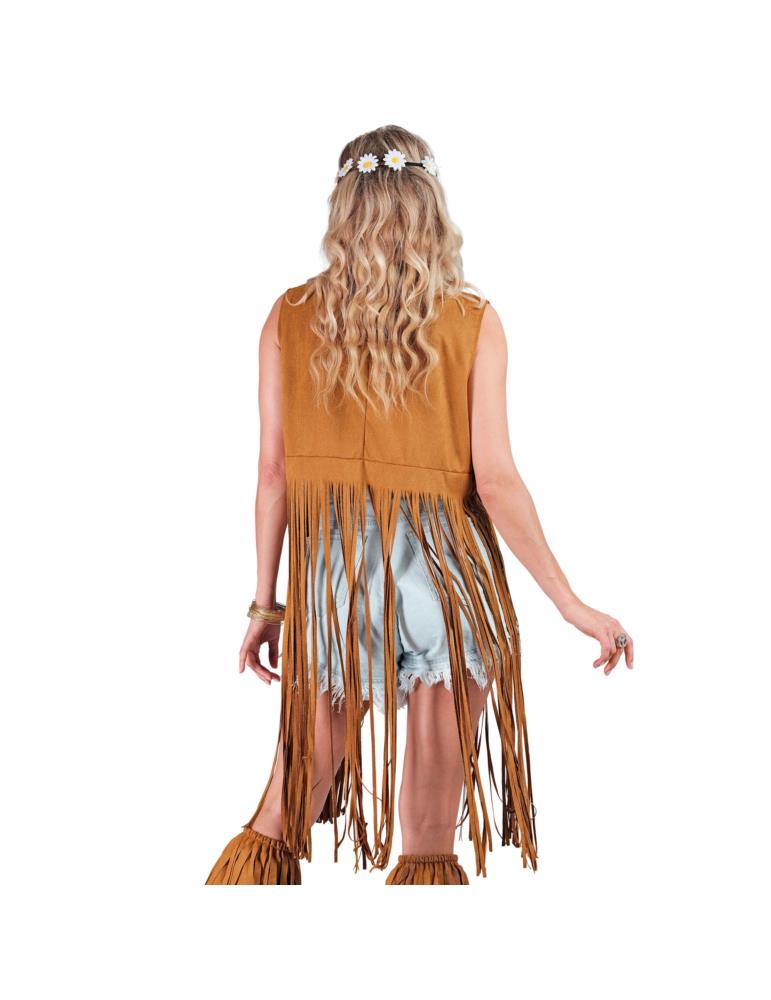 Ta brązowa kamizelka z długimi frędzlami to doskonały wybór na przebranie w stylu hippie.