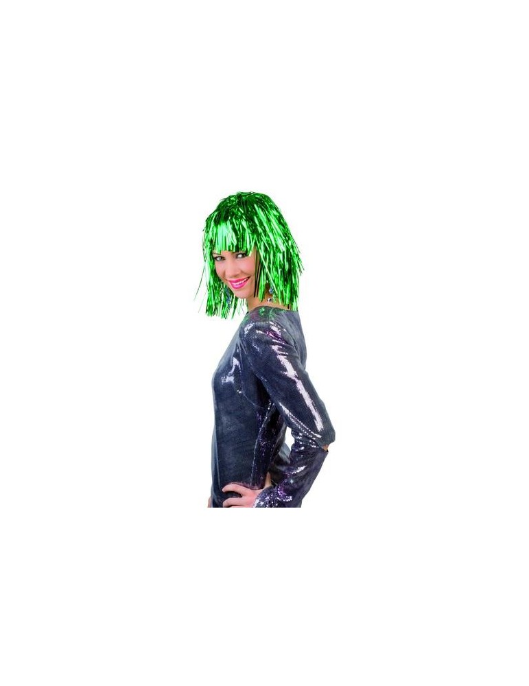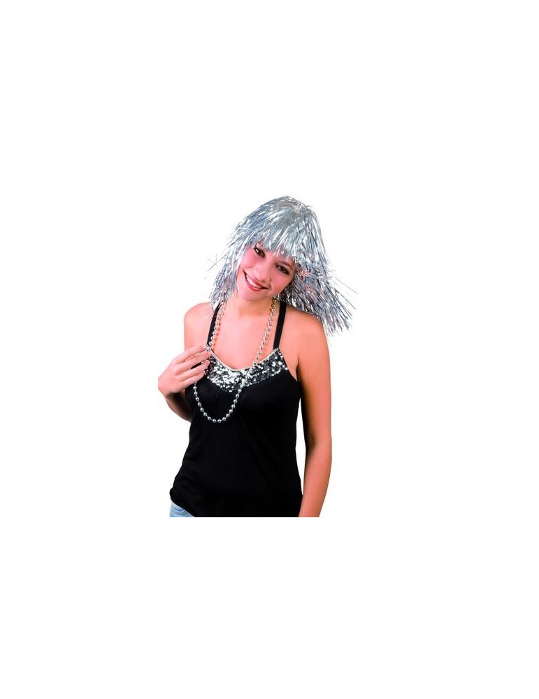 Krótka peruka lurex w kolorze srebrnym.