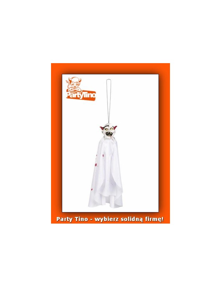 40- to centymetrowa dekoraca z gumową głową do której przymocowana jest biała zakrwawiona szata