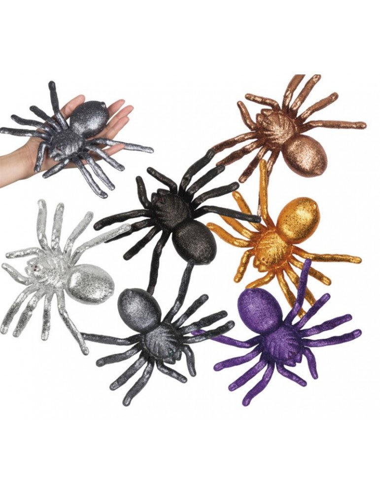 Pająki duże brokat srebny 16x20cm74574S pająk 1 szt. dekoracja Halloween