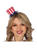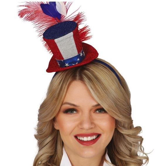 Elastyczna opaska z kapelusikiem i piórkiem w kolorach flagi USA