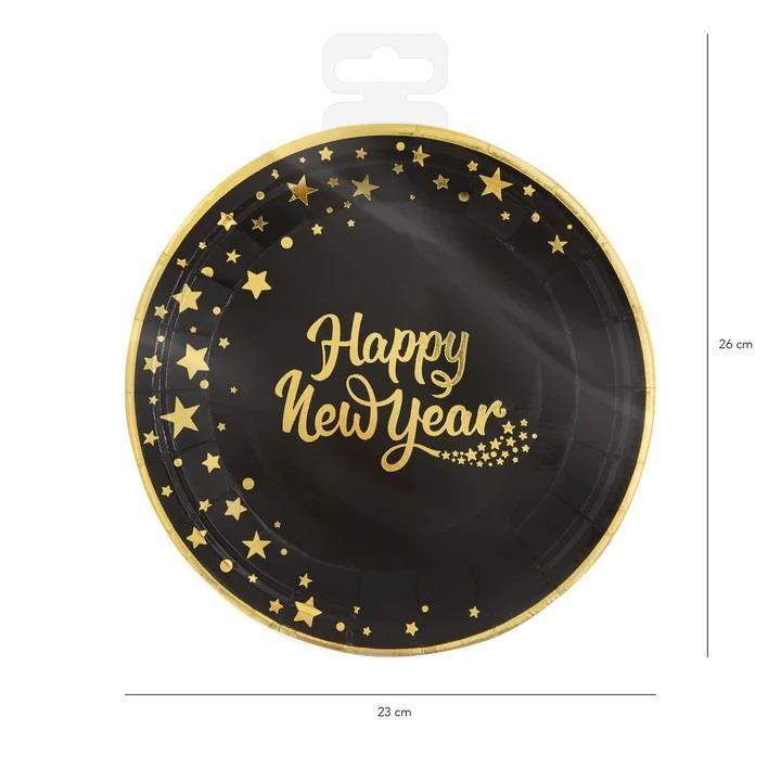 Talerzyki Happy New Year 6 szt 130278 23 cm DUŻE papierowe