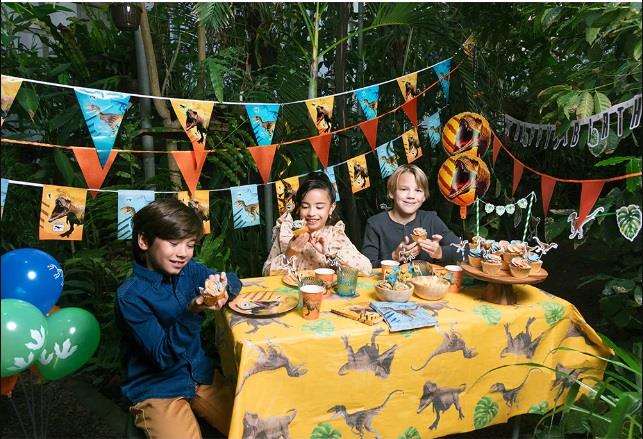 Niezwykły i klimatyczny banner z dinozaurami jest idealną dekoracją na fajne przyjęcia dla dzieci lub dorosłych,