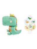 Ten zestaw sześciu lateksowych balonów z fajnym nadrukiem dinozaura