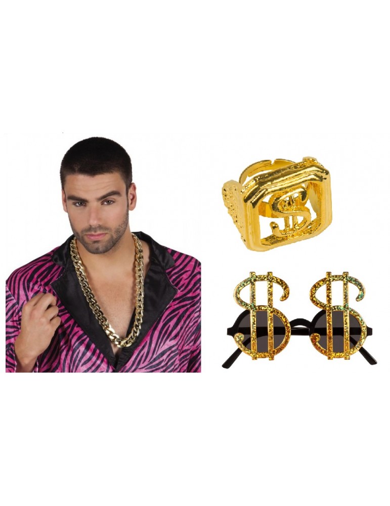 Zestaw Disco Dresiarz Okulary Sygnet Łańcuch 3el MK137