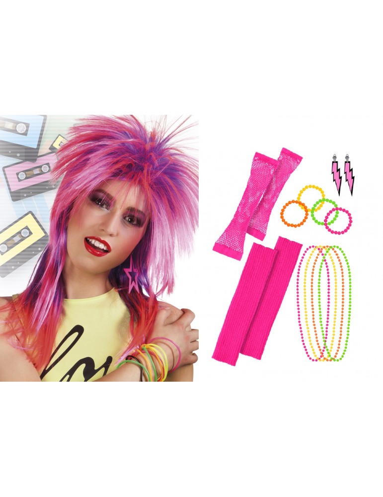 Zestaw dodatków do stroju w stylu lat 80-tych.