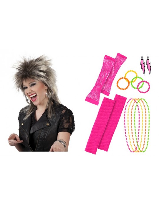 Zestaw dodatków do stroju w stylu lat 80-tych.