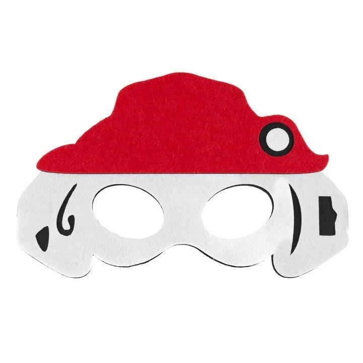 Filcowa maska w psa strażaka, stronie to kreatywny element stroju, który z pewnością przyciągnie uwagę małych entuzjastów strażackich przygód.