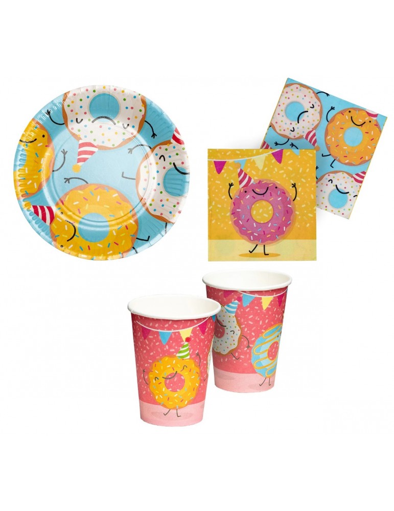 Zestaw Urodzinowy Donut Pączek Talerzyki Serwetki Kubeczki 36el MK249