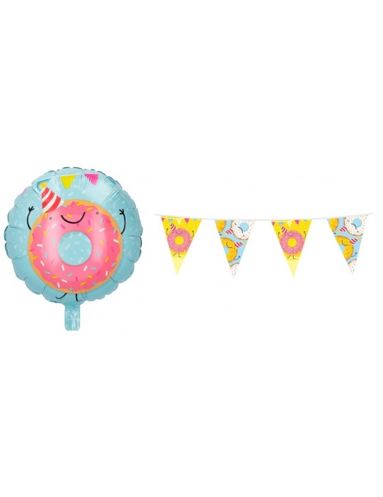 Zestaw Urodzinowy Donut Pączek Balon plus Girlanda 2el MK252
