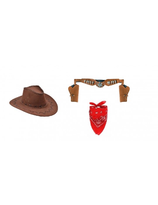 Zestaw Kowboja/Kowbojki Kapelusz Brązowy Bandanka Kabury dla dorosłych 5el MK608