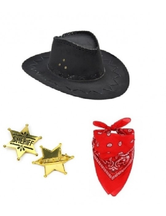 Zestaw Kowboj/Kowbojka: Bandanka Kapelusz Gwiazda Dziecięcy 3el MK739