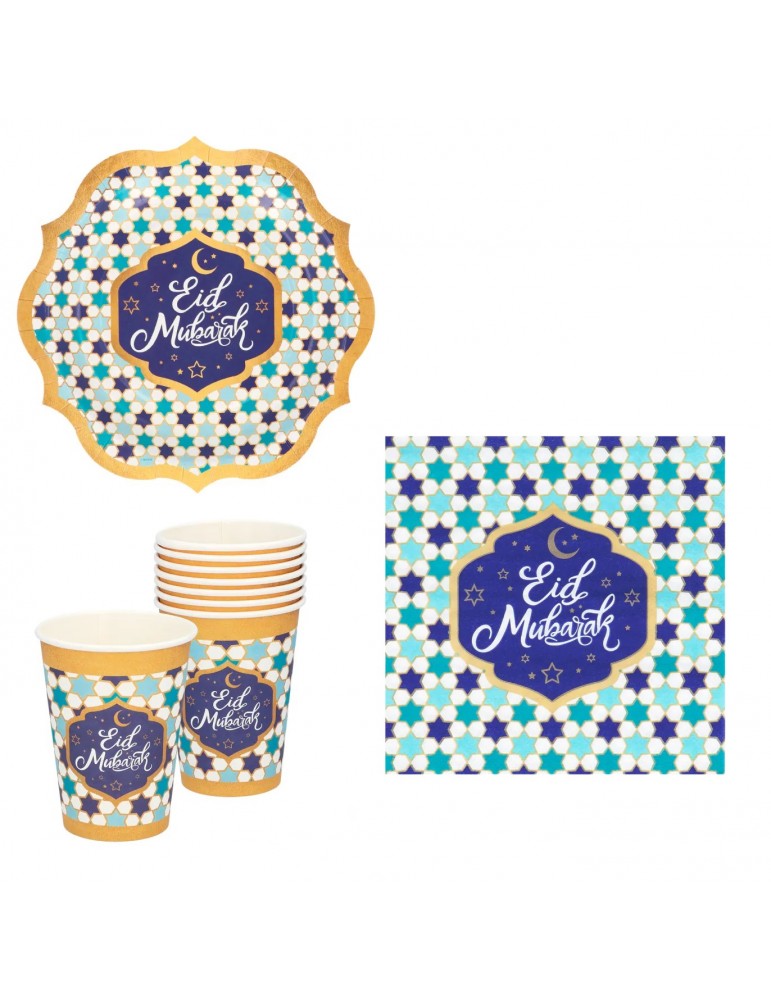 Zestaw Turecki Eid Mubarak Talerzyki Serwetki Kubeczki 36el MK254