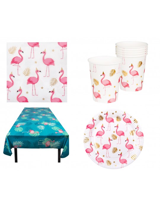 Zestaw Flamingi Obrus Kubeczki Talerzyki Serwetki 41el MK176