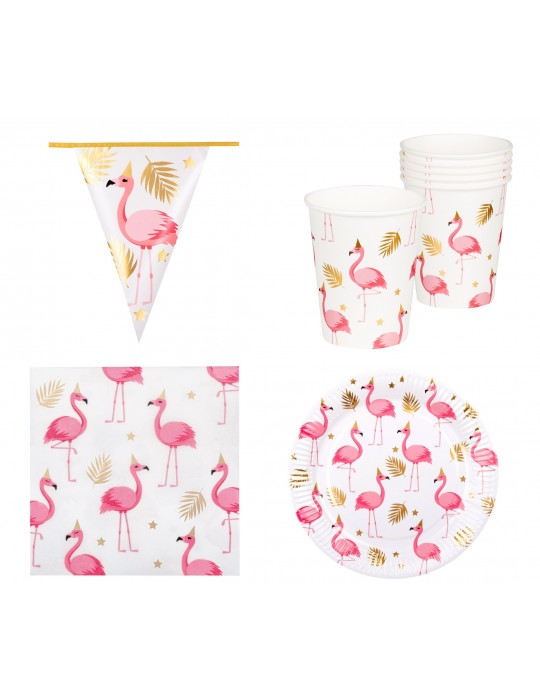 Zestaw Hawajski Flamingi Talerzyki Serwetki Kubeczki Banner 41el MK179