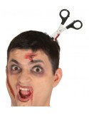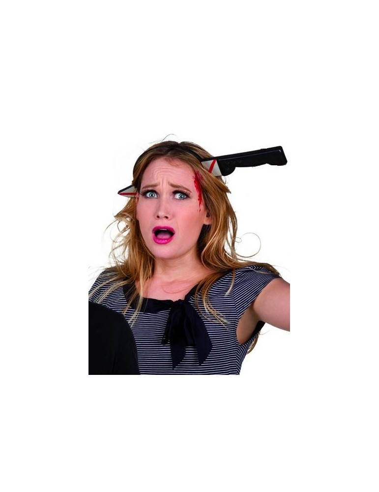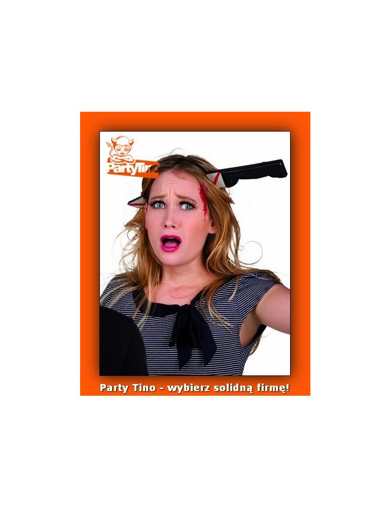 Opaska imitująca wbijający się w głowę zakrwawiony nóż.