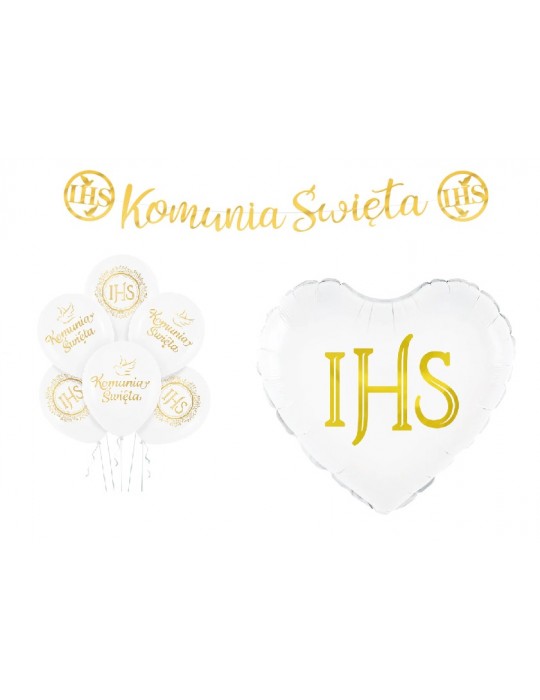 Zestaw Dekoracji Komunia Święta IHS Balony 6szt Banner Balon Foliowy 3el MK155